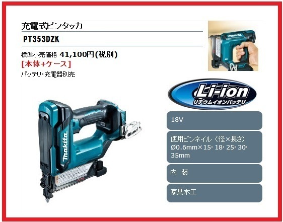 - マキタ 18V 充電式ピンタッカ PT353DZK (本体+ケース) ■安心のマキタ純正/新品/未使用■