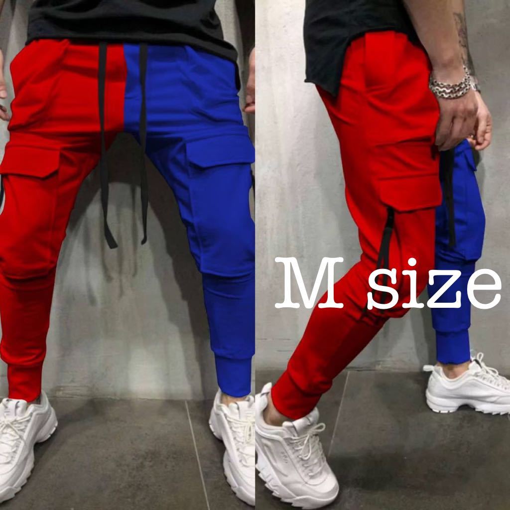 - ジョガーパンツ ストレッチ ツートン トラックパンツ カーゴパンツ 赤青 M