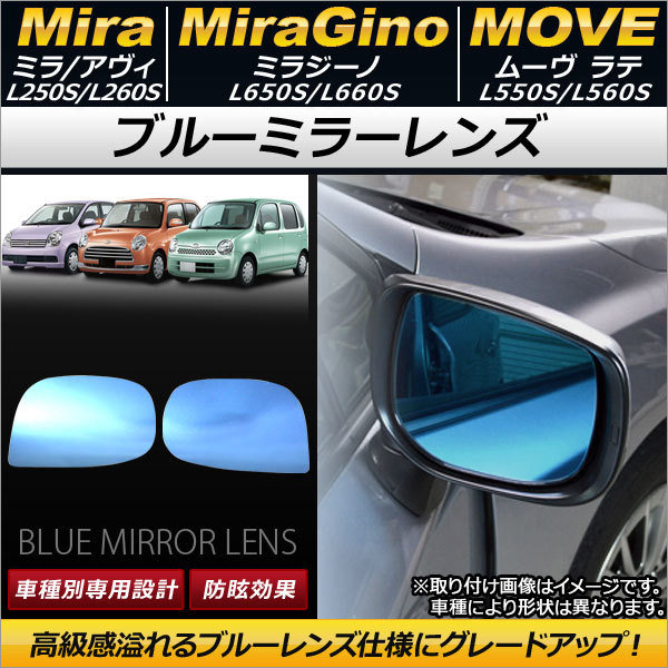 > ブルーミラーレンズ ダイハツ ミラ/ミラアヴィ L250S/L260S ドアミラーウインカー付車用 2002年12月~2006年12月