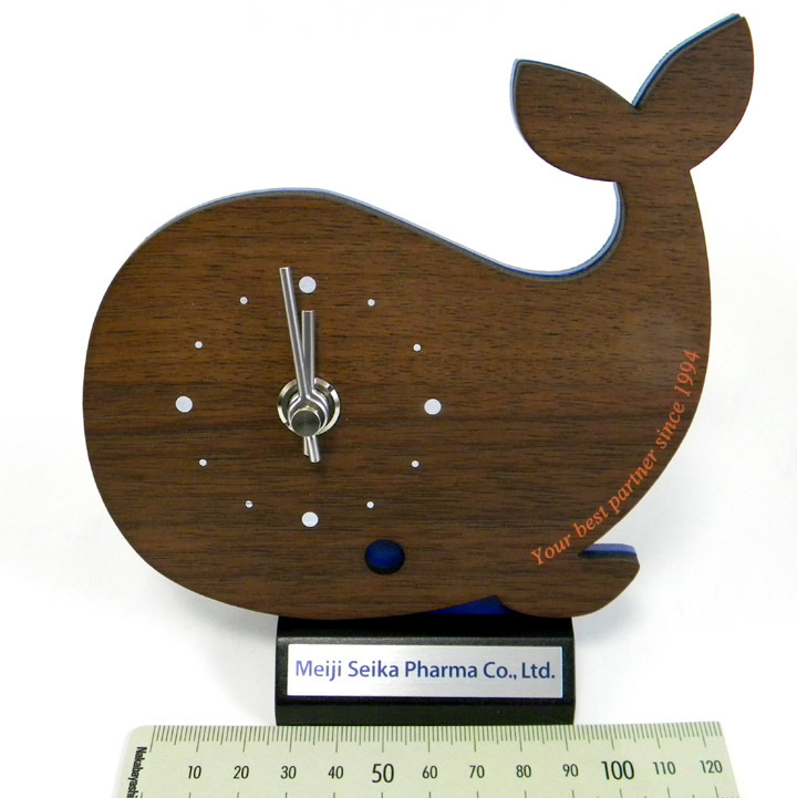 - ★ 木製 クジラ 置時計 / メイアクト発売20周年記念 / Meiji Seika ファルマ株式会社