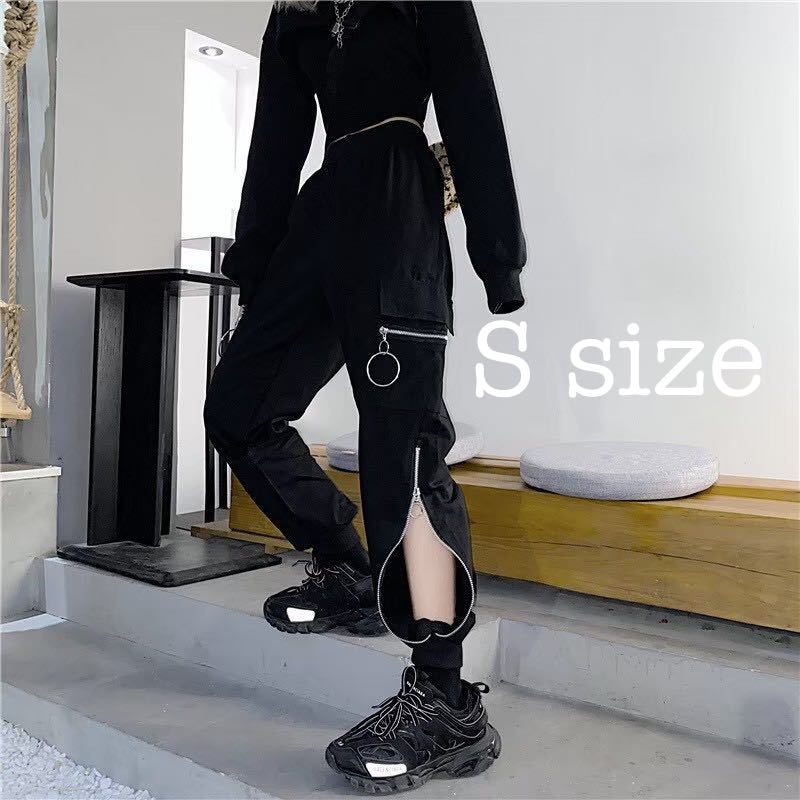 - ボトムス サイドジップ ジョガーパンツ スリット イージーパンツ ダンス 衣装 黒 ブラック S