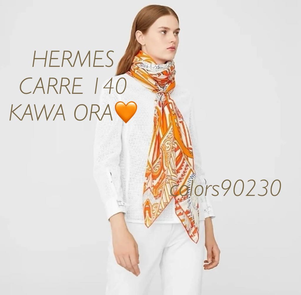 - 上代約23.4万円◆極美品 エルメス カレジェアン カシミヤシルク 大判スカーフ ストール カレ140 カシシル カワ・オラ KAWA ORA カシミア