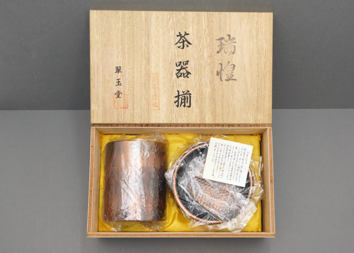 - 翠玉堂 瑞惶 茶筒 建水 茶箕揃 木箱入