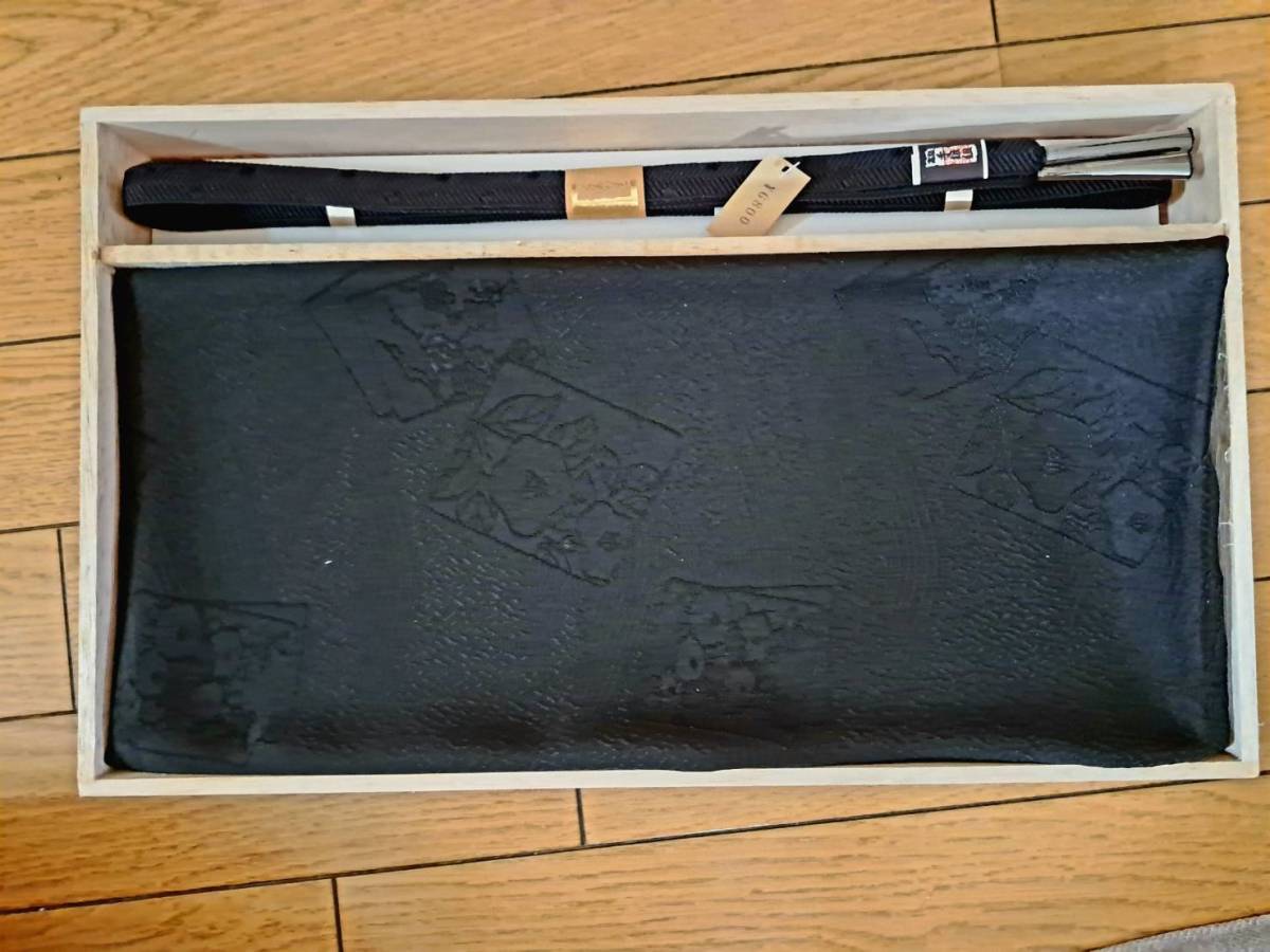 - 新品・自宅保管 帯揚げ・帯締めセット2 正絹 深泥黒 五倍子黒 くみひも 喪服 箱に汚れあり