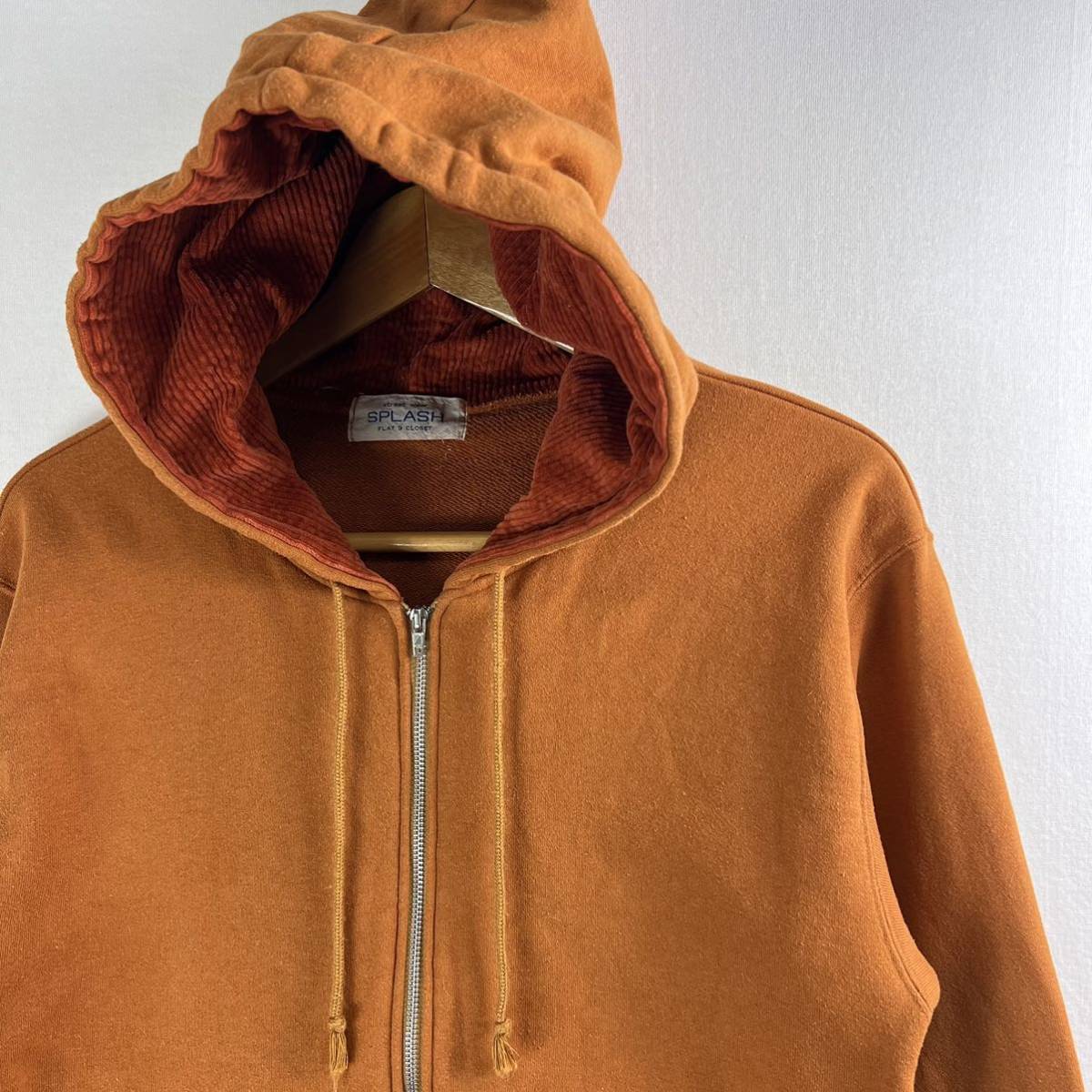 - レア 無地カラー【90s】ビンテージ フード内 コーデュロイ フルジップパーカー 2トーン 日本製 針抜き 古着 太畝 グランジ ロック ビンスエ