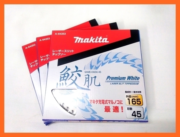 - マキタ 165mm 鮫肌プレミアムホワイトチップソー A-64353×3枚 (45枚刃) [集成材・一般木材用]▼■安心のマキタ純正/新品/未使用■