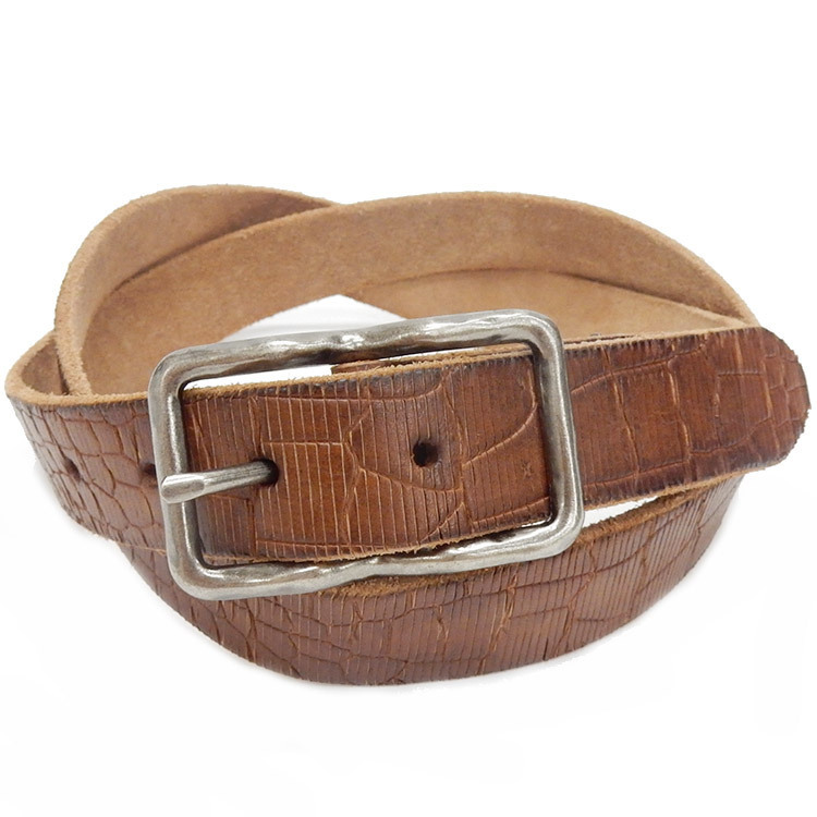 - FARSIO 牛革 茶系 クロコ型押し 中一型バックル 約2.9cm巾 アルゼンチンレザー メンズベルト SB-065-BR