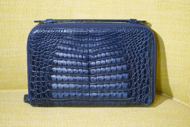 - 美品 レア クロコダイル トラベルケース オーガナイザー クラッチ 紺 ネイビー 極上 IRV