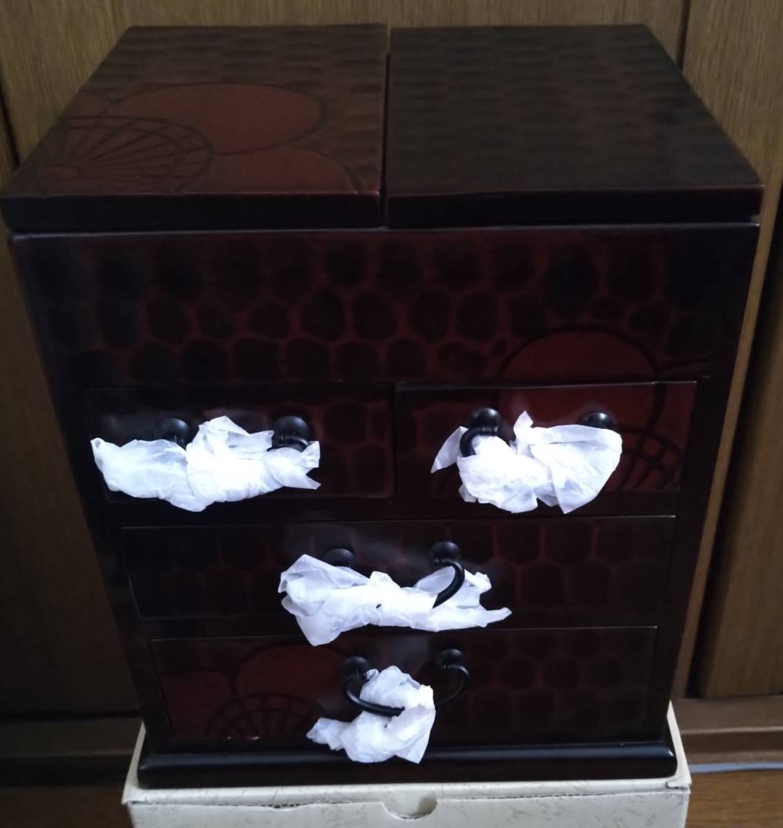 - からくり三段四ッ引タンス・加賀梅彫(長期保管品:中国製)