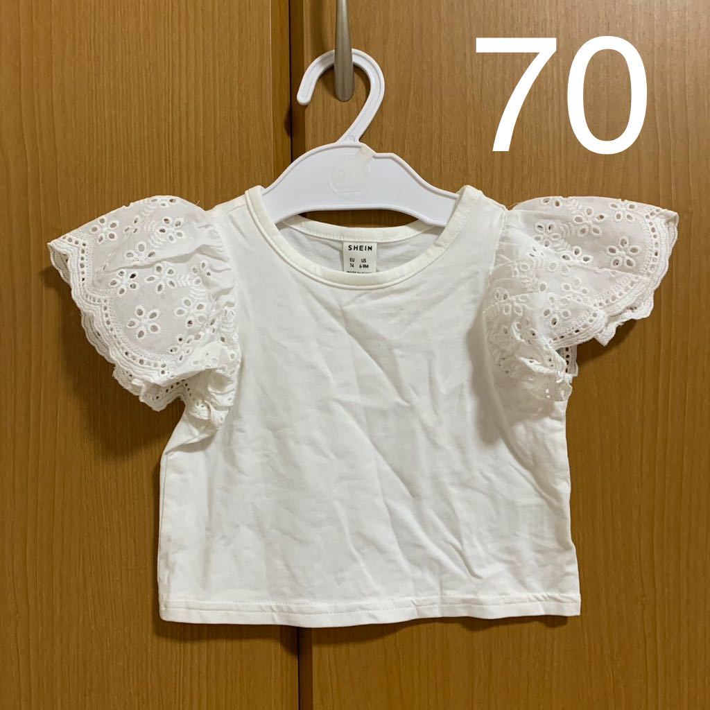 - ホワイト コットン フリル 半袖 カットソー Tシャツ 70