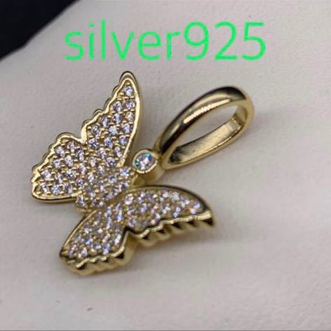 - スターリング silver925 ゴールド色 ジルコニア 蝶 アゲハ ネックレス