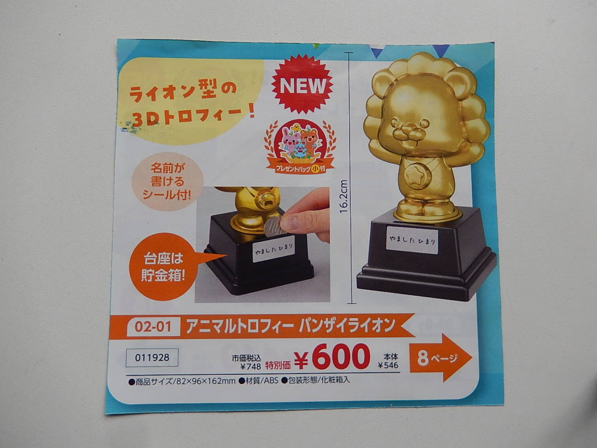 > ★11928★アニマルトロフィーバンザイライオン★名前が書ける3Dトロフィー!★名前が書けるシール付★台座は貯金箱★知育玩具★伝承玩具★