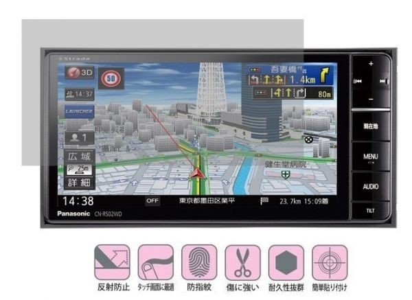 - 10-03-01【7インチ】Panasonic カーナビ ストラーダRSシリーズCN-RS02WD用 反射 指紋、キズ防止 抗菌 目を保護 気泡ゼロ液晶保護フィルム