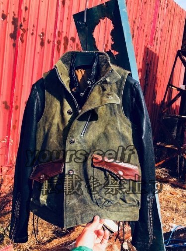 - 雰囲気抜群のコットンキャンバス×レザー×ナバホブランケットの裏地 ライダースベスト カーキ本革 S~2XL