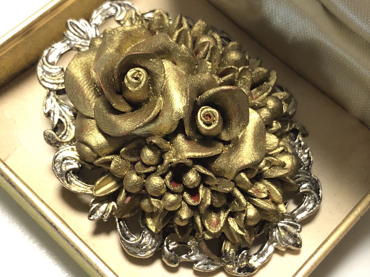 - アンティーク調 粘土細工 20.6g 2WAY 薔薇 デザイン ペンダントトップ兼ブローチ ケース付属