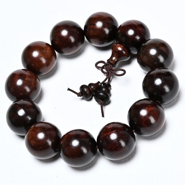 - [EasternStar] 海外発送 ラオス レッド ローズウッド ブレスレット お守り 数珠 念珠 木珠 20mm 12玉 小孔 ひょうたん