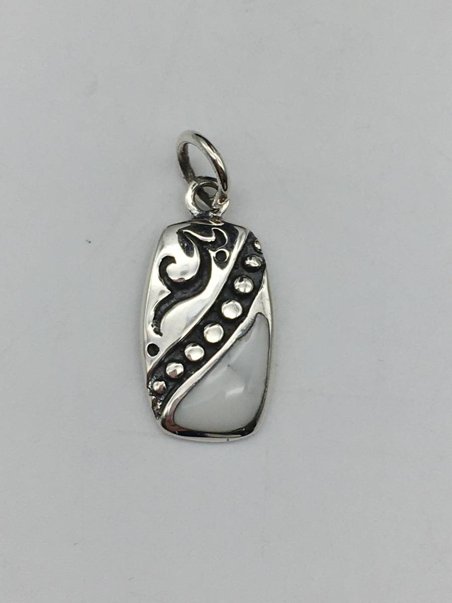 - 【2004】シルバーアクセサリー ペンダントトップ 四角 柄 白 925 316 *【359101000005】