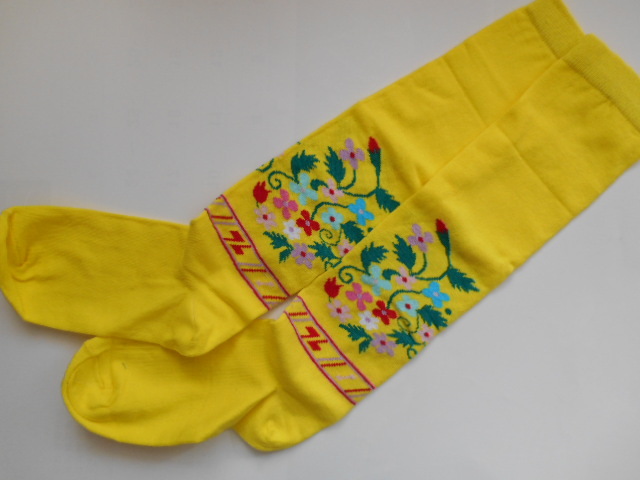 - ブルガリア 民族衣装 ダンス 靴下 ハイソックス 花 黄色 イエロー 103