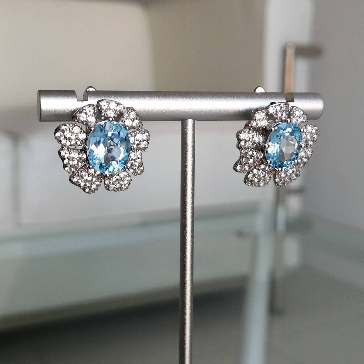 - 12ct天然スカイブルートパーズ&ホワイトトパーズ[tZWG]ピアスK14WG