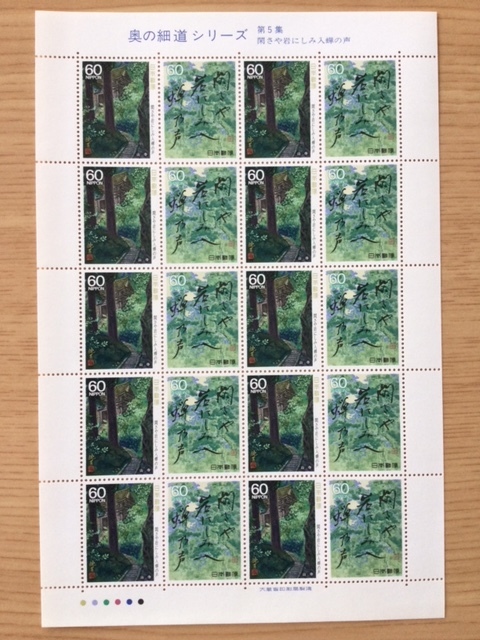 > 奥の細道シリーズ 第5集 閑さや 岩にしみ入 蝉の声 1シート(20面) 切手 未使用 1988年