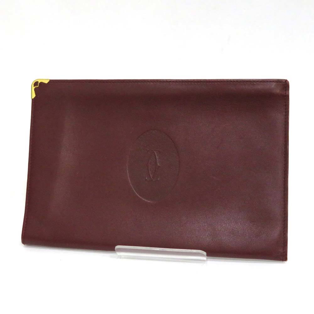 > 中古 カルティエ マストライン 化粧ポーチ ABランク ボルドー ミニポーチ Cartier レディース【送料無料】【名谷店】