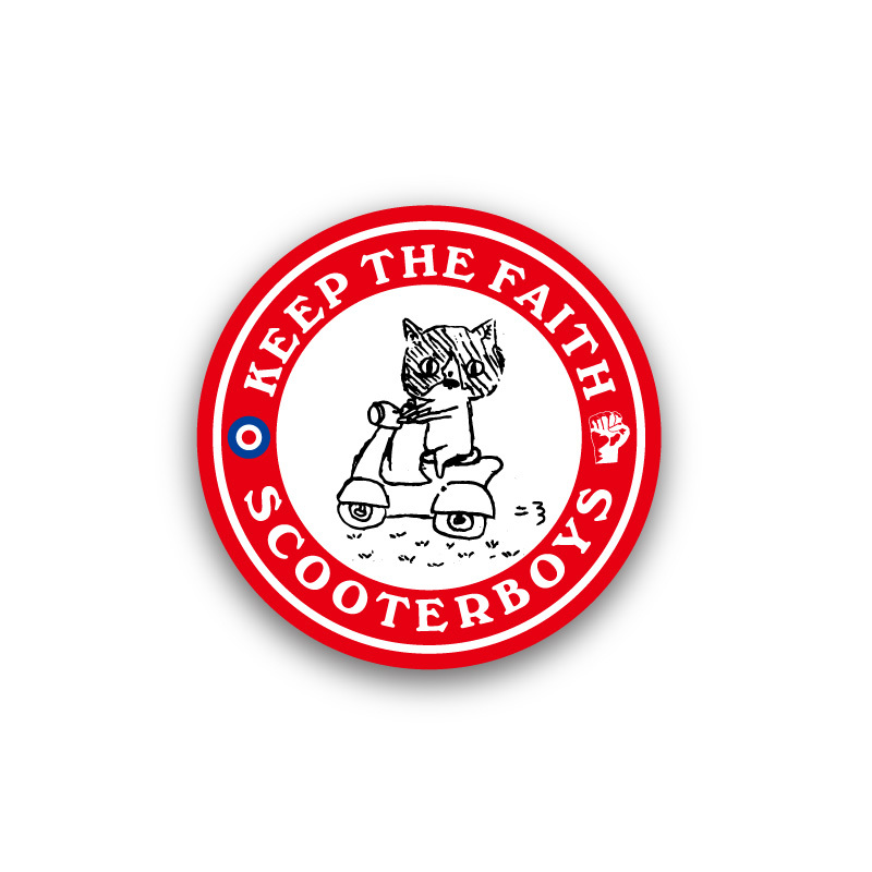 > 缶バッジ 44mm scooterboys 赤 キャップ 帽子 バックパック リュック イラスト ネコ 黒猫 vespa lambretta シンボル scooter 缶バッチ