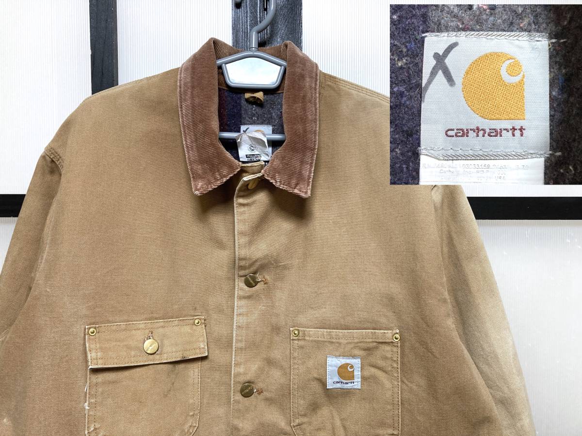 - 90s カーハート 裏地 ブランケット ブラウンダック カバーオール ビッグサイズ USA製 / 90年代 サンフェード ジャケット ワーク アメリカ製