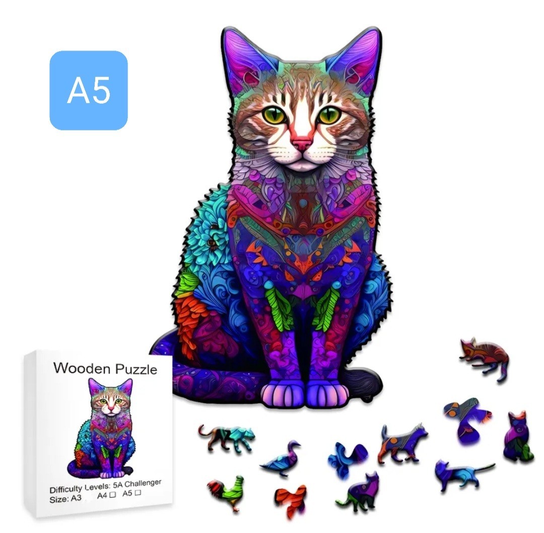 - 猫の雑貨 HANAKO 木製パズル 猫 CAT03 A5サイズ