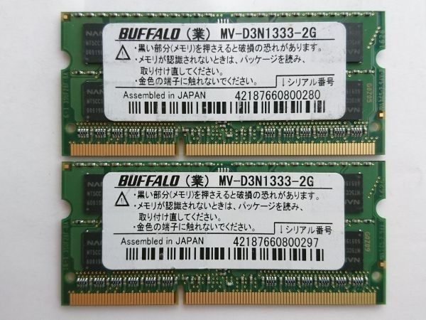 - 中古品★BUFFALO メモリ 2GB MV-D3N1333-2G★2G×2枚 計4GB