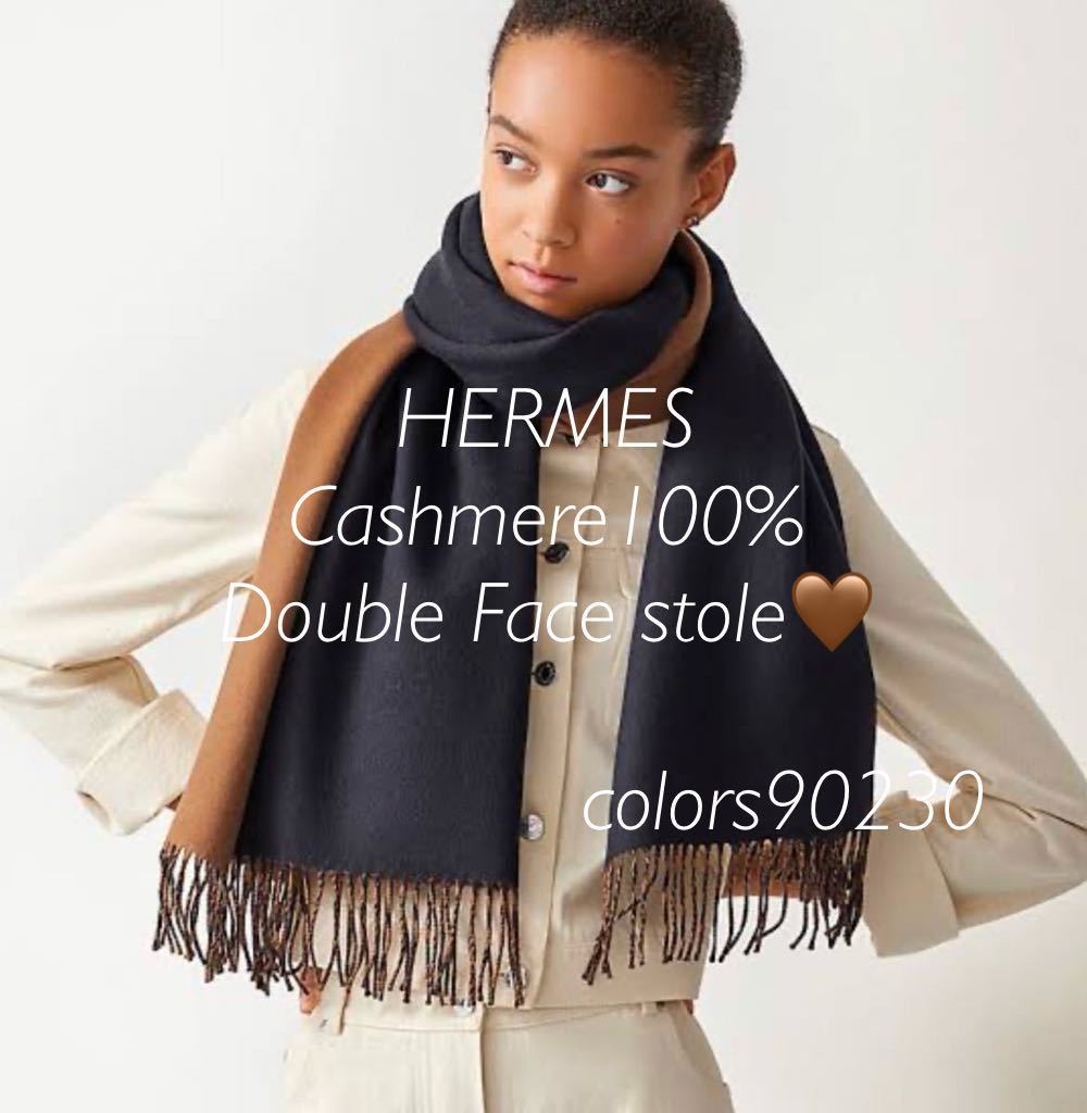 - 廃盤希少!定価約23.8万円◆未使用 エルメス カシミヤ 大判 ストール ダブルフェイス オークル×ノワール 黒 ブランケット カシミア 正規品
