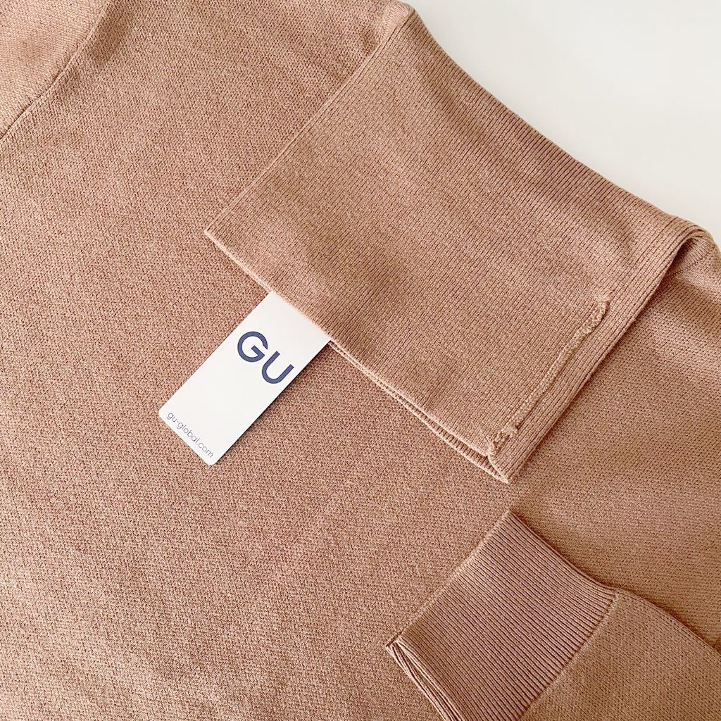 > 新品 XS メンズ GU ジーユー スウェットライク タートルネック セーター ニット 長袖SW+E オーバーサイズ ブラウン ベージュ キャメル