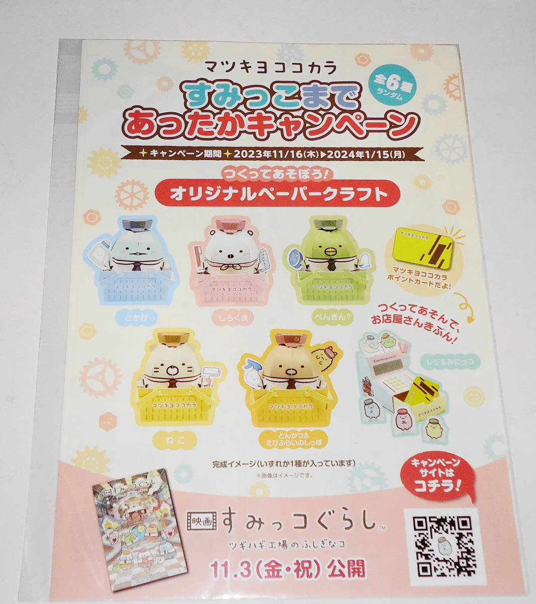 - 送0【未使用 すみっコぐらし ペーパークラフト マツキヨ ココカラファイン】マツモトキヨシ 非売品 限定コラボ
