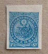 - 日露戦争凱旋観兵式記念 1銭5厘 未使用 無目打ち レプリカ?