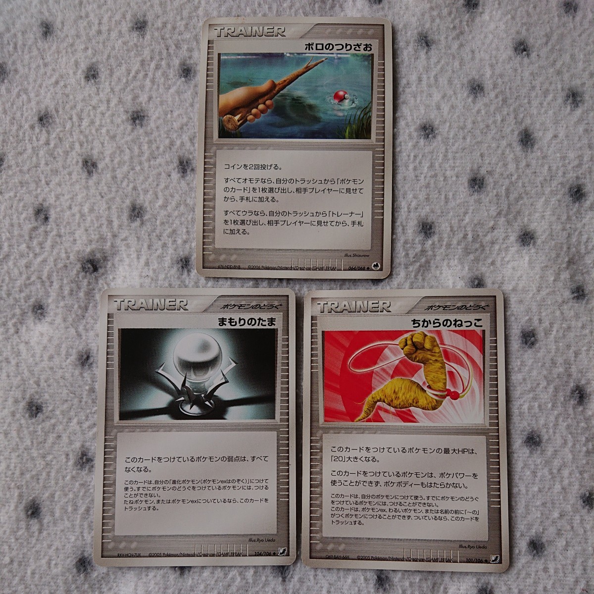 - ポケモンカード PCG ☆ TRAINER 3枚セット ☆ ボロのつりざお 、 まもりのたま 、 ちからのねっこ ☆ まぼろしの森 、 金の空、銀の海