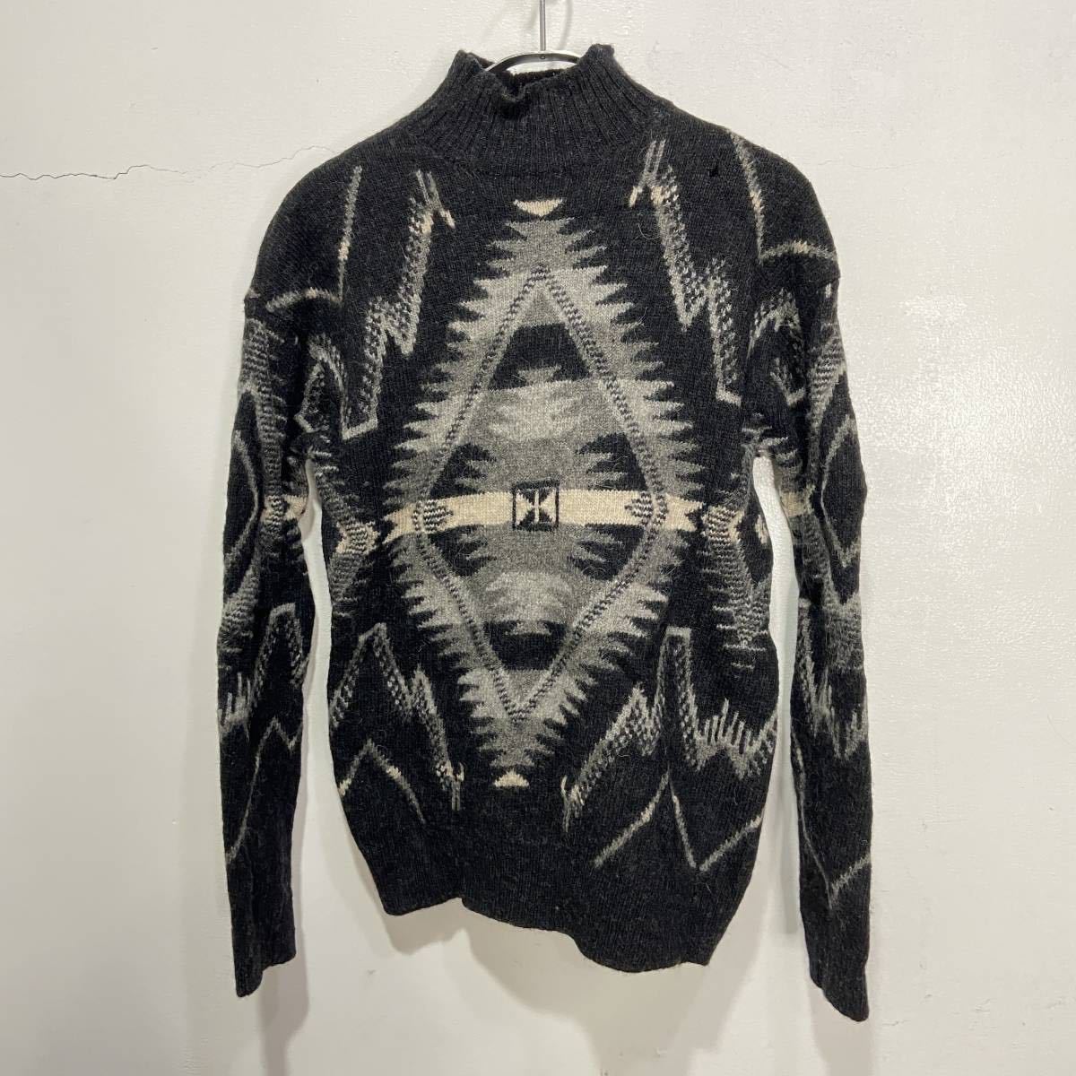 - 送料無料☆90s☆POLOSPORT☆ポロスポーツ☆ラルフローレン☆ネイティブ柄ウールハイネックセーター☆ニット☆ブラック☆レディースS☆K23