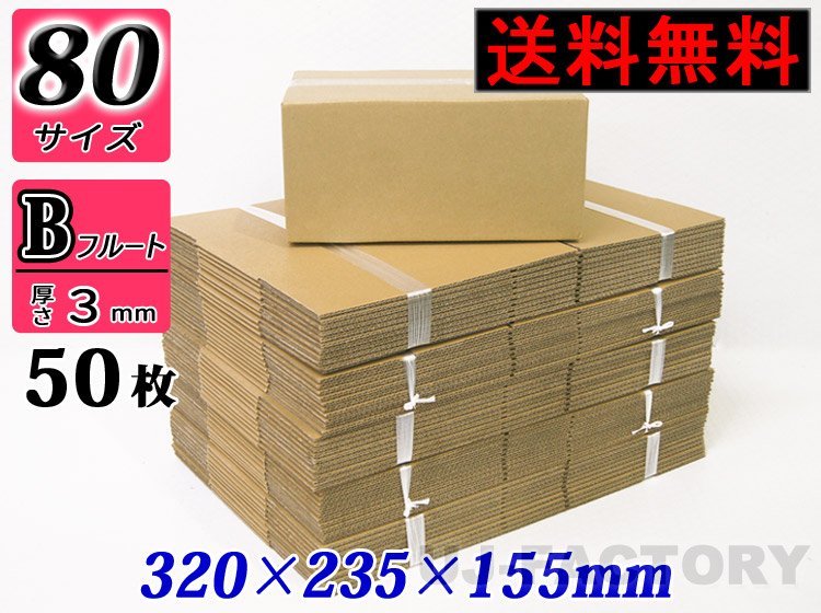 - 【地域限定送料無料!即納!】ダンボール箱/80サイズ【50枚】★320mm×235mm×155mm