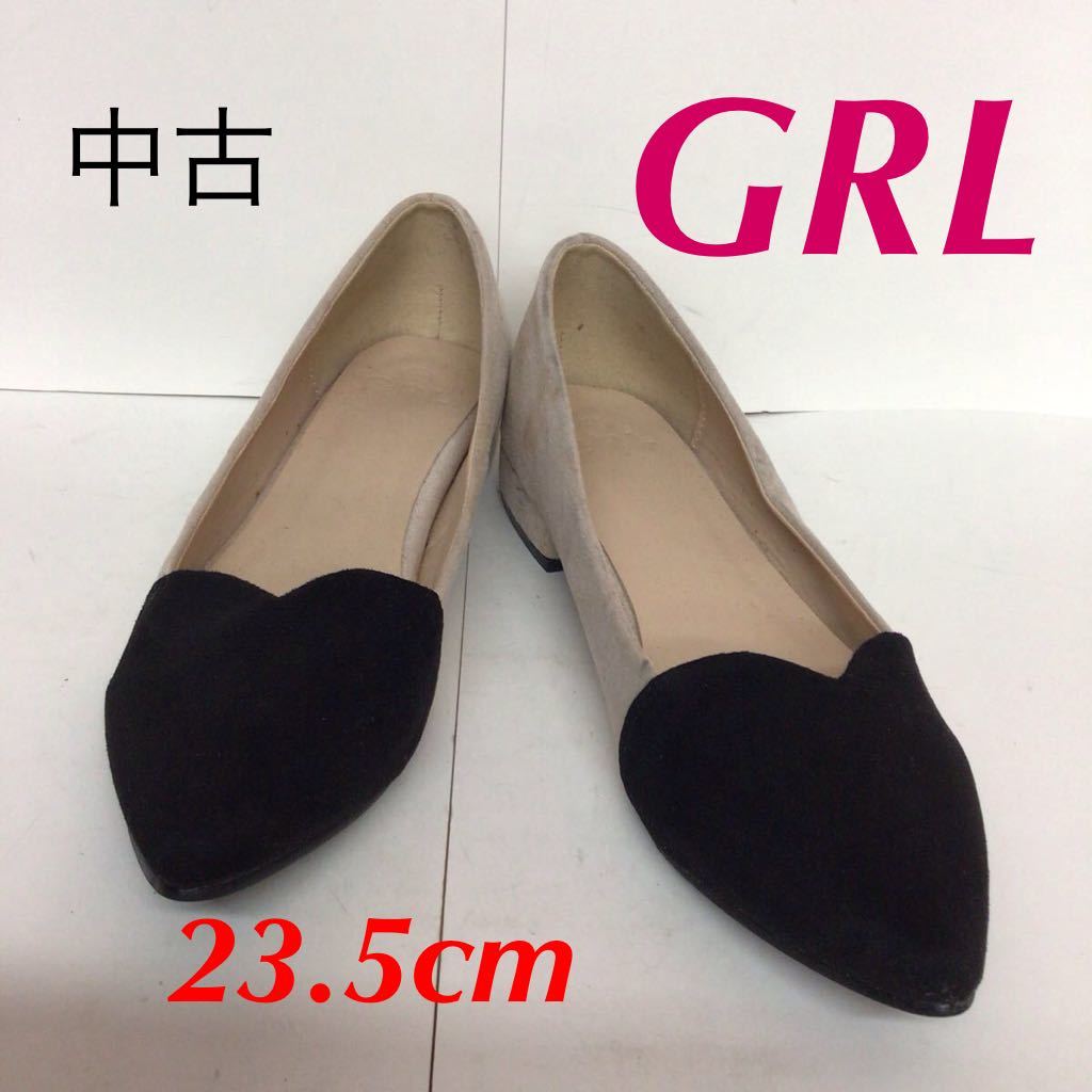 - 【売り切り!送料無料!】A-333 GRL!パンプス!ぺたんこ!スエード!23.5cm!ブラック!黒!ベージュ!おしゃれ!かわいい!中古