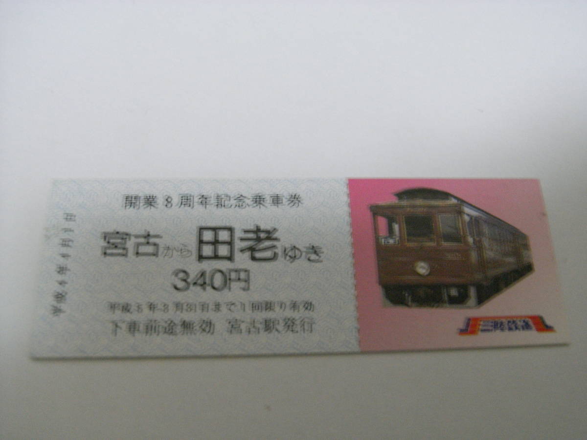 - 三陸鉄道 開業8周年記念乗車券 宮古から田老ゆき 平成4年4月1日 宮古駅発行