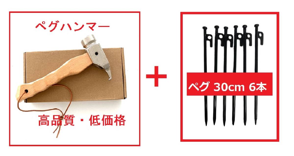 - 【匿名配送】高品質 ペグハンマー ペグ6本 セット テント アウトドア 付属箱 名栗加工 タープ 6-1