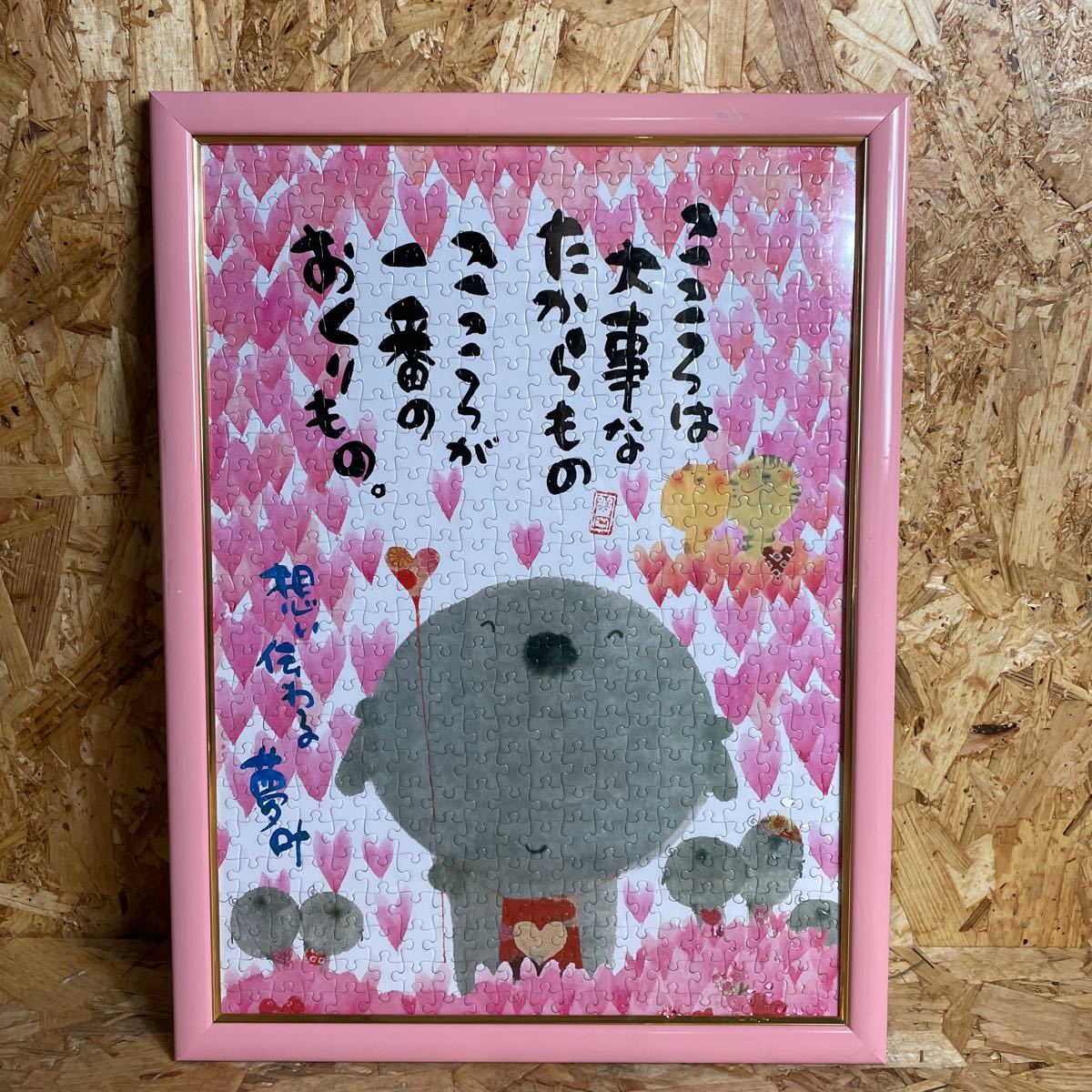 - k イラスト ピンク パズル お地蔵さん 贈る言葉 和風フレーム 49×36cm 中古