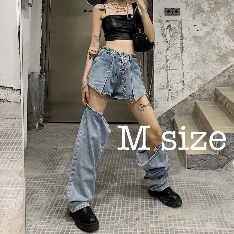 - 人気 大好評 デニム セパレート ジーンズ ボトムス 変形 ダンス 衣装 ブルー 青 M