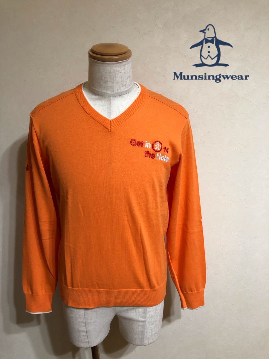 - Munsingwear golf マンシングウェア ゴルフ ウェアー Vネック ニット セーター トップス サイズM 長袖 橙 日本製 SG4296