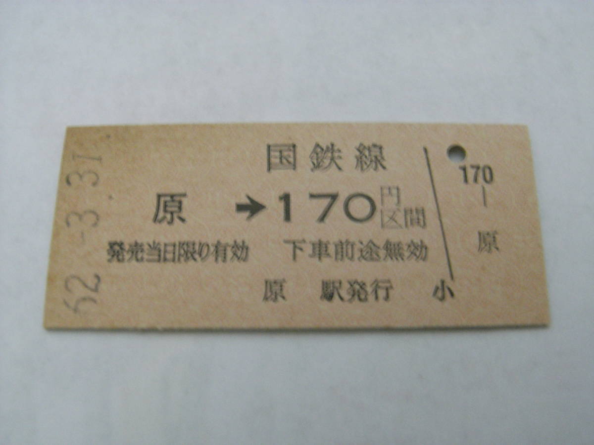 - 東海道本線 原→国鉄線170円区間 昭和62年3月31日 原駅発行 ●国鉄最終日