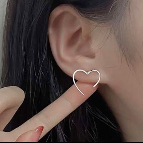 - シンプル ハート ワンポイント ピアス シルバー 2