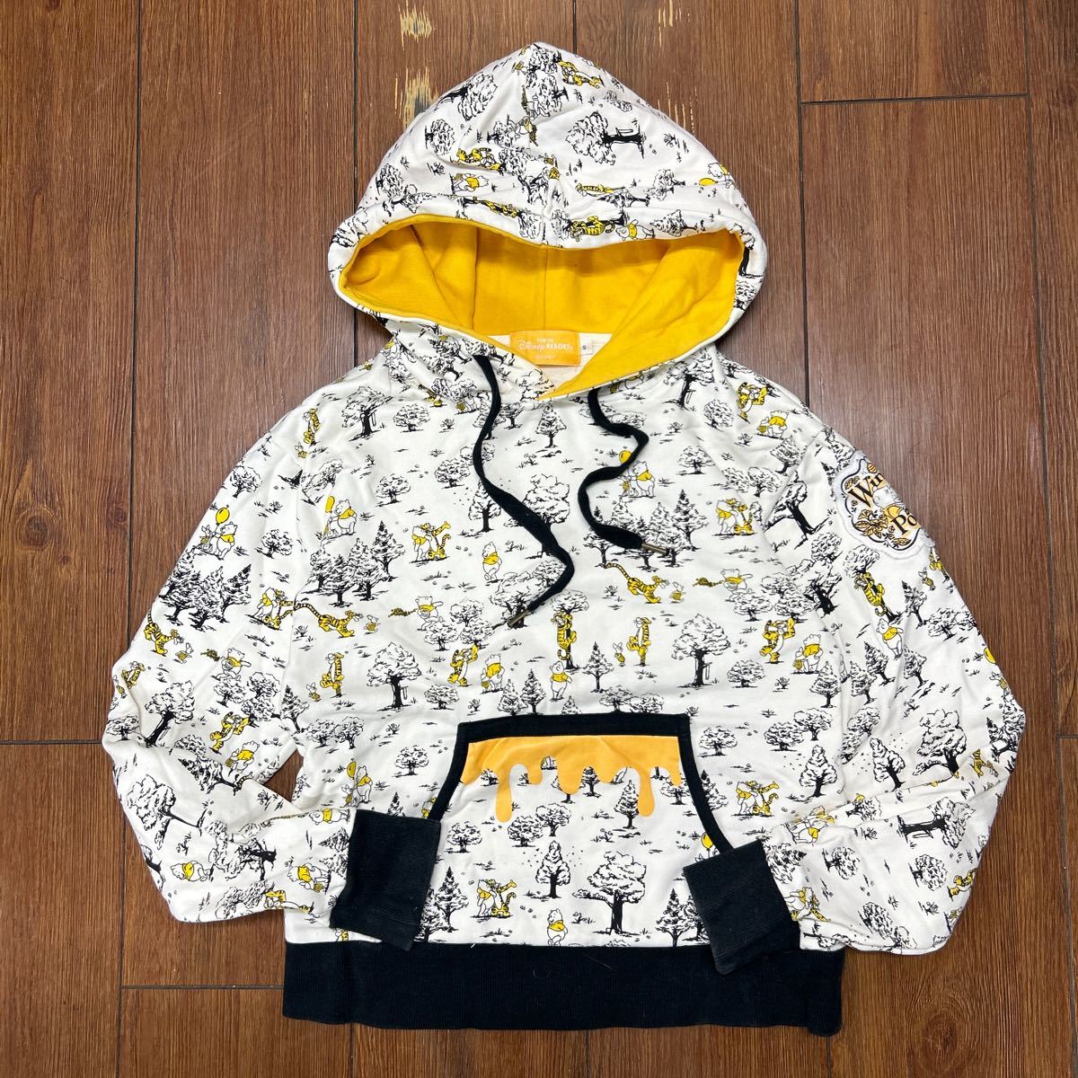- disney ディズニー くまのプーさん 総柄 白 S レディース 穴有り e1