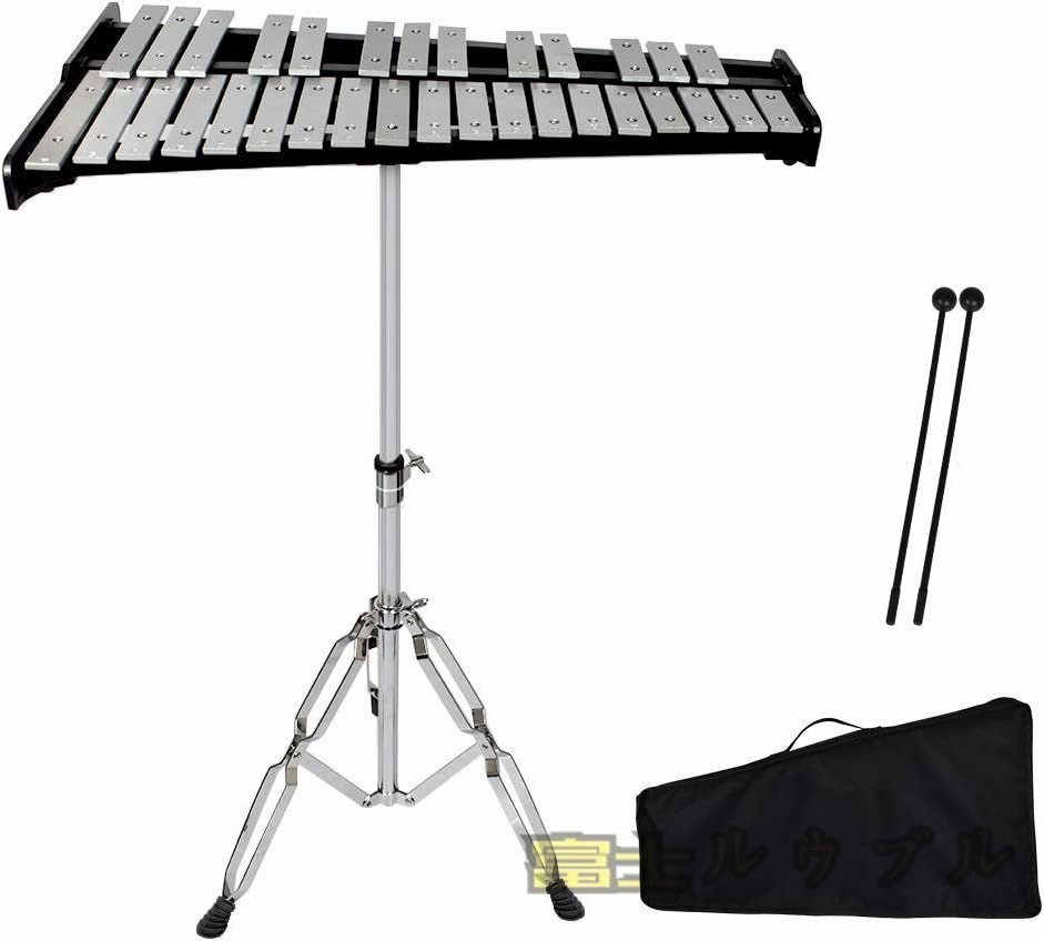 - 新入荷☆ 32音 鉄琴 卓上鉄琴 パーカッション 楽器 卓上 練習 鍵盤 初心者 高さ調節可能 マレット2本 スタンド付き 収納ケース付き