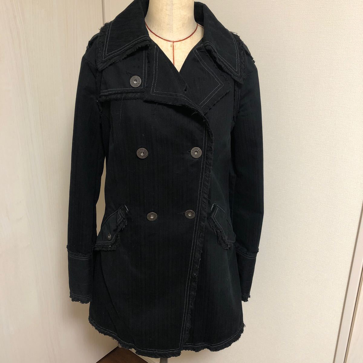 > 美品 殆ど着用せず ハワイで購入 ディーゼル トレンチコート レディース スプリングコート diesel ブラック S M ダメージ風