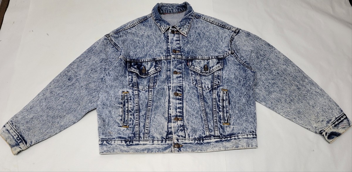 > ~80s USA製 Levi's 70417 0819 ケミカルウォッシュ 裏チェック デニムジャケット L 80年代 アメリカ製 ビンテージ