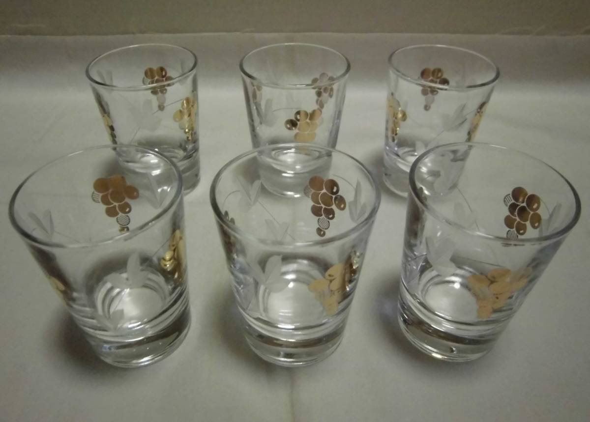 - ショットグラス アデリアガラス 葡萄柄 切子 6客 石塚硝子 ぶどう カット硝子 金彩 ウイスキー リキュール 日本酒 お猪口 酒器 工芸品
