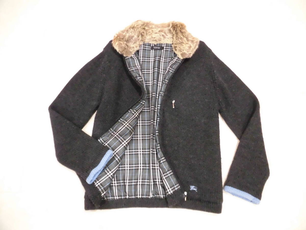- 【美品】 BURBERRY BLACK LABEL ラビットファー ニットジャケット サイズ2(Mサイズ) バーバリーブラックレーベル ダウン ライダース